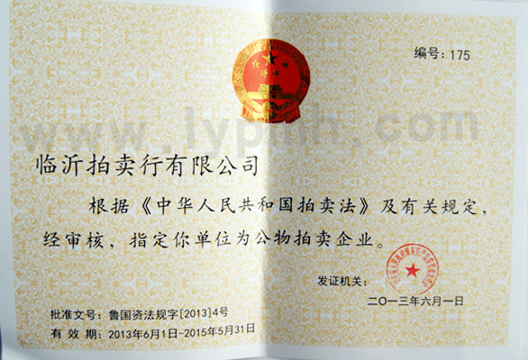 拍賣(mài)經(jīng)營(yíng)批準證書(shū)
